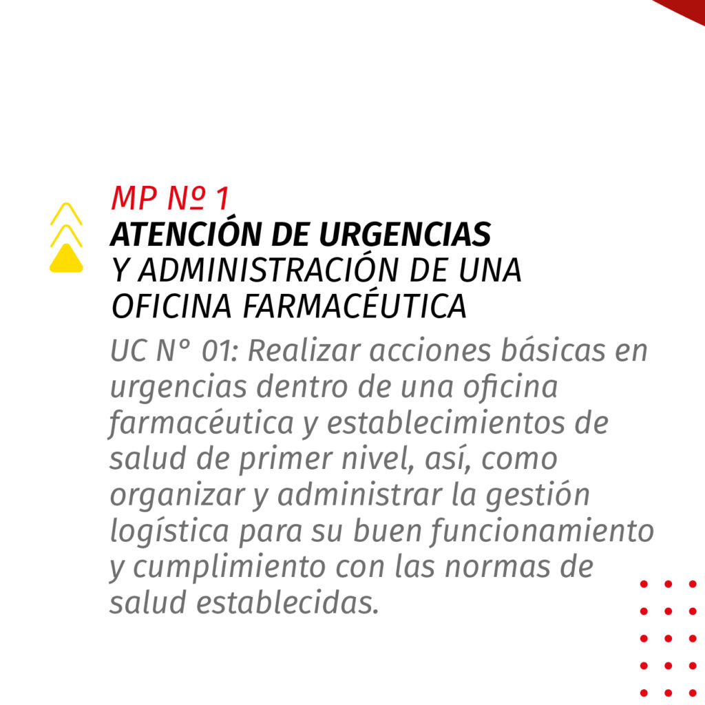 Administrar un establecimiento farmacéutico a su nivel, dispensar, expender productos farmacéuticos y afines; resolver consultas sencillas del cliente o paciente; preparar medicamentos y afines bajo supervisión, teniendo en cuenta los criterios de calidad, seguridad, normas de salud y ética profesional.